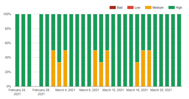 Cet indicateur vous permet d'évaluer la réputation de votre domaine d'expédition. Une bonne réputation augmente vos chances d'atteindre la boîte de réception, tandis qu'une mauvaise réputation augmente le risque de placement en spam.