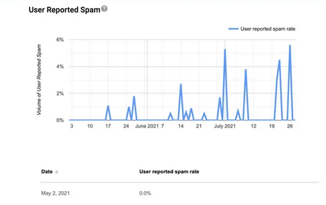 Cet indicateur affiche le pourcentage de vos emails que les utilisateurs de Gmail marquent comme spam. Un taux élevé nuit à votre délivrabilité.